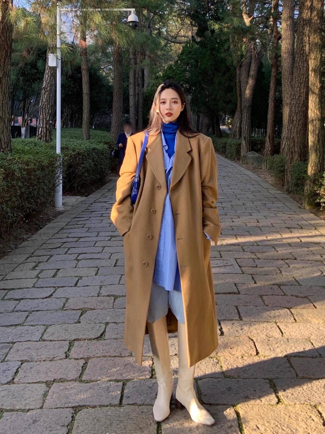 大衣我们可以考虑用焦糖色来进行作为配色,这样会给你带来更加精致的气息,而且焦糖色的显白效果也很出众,同时也相对来说比较沉稳,并不会让你的穿搭显得很浮夸。